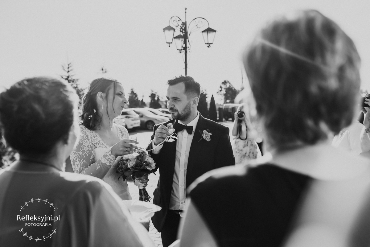 Warto dodać, że Paulina i Adam przeszli przez cały dzień z uśmiechami, niezwykle pewnym krokiem. Nie załamał się głos podczas przysięgi, nie ugięły nogi podczas pierwszego tańca. Życzymy Wam, abyście tak szli przez całe życie: razem, pewnie i z uśmiechem!